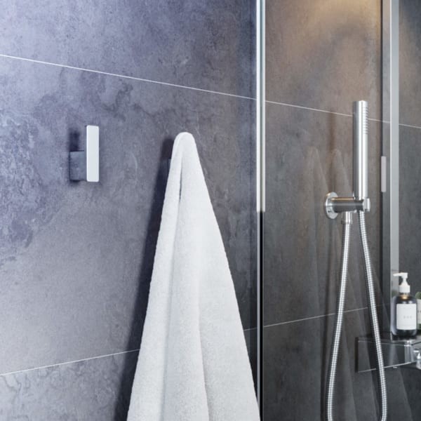 The Cinder series has a lower profile than most of the other Volkano series while maintaining the same feeling of energy. With its square corners and chiseled aesthetic, the Cinder towel hook blends into the bathroom landscape. Available in chrome, brushed nickel, matte black, brushed gold dark and brushed gold light.