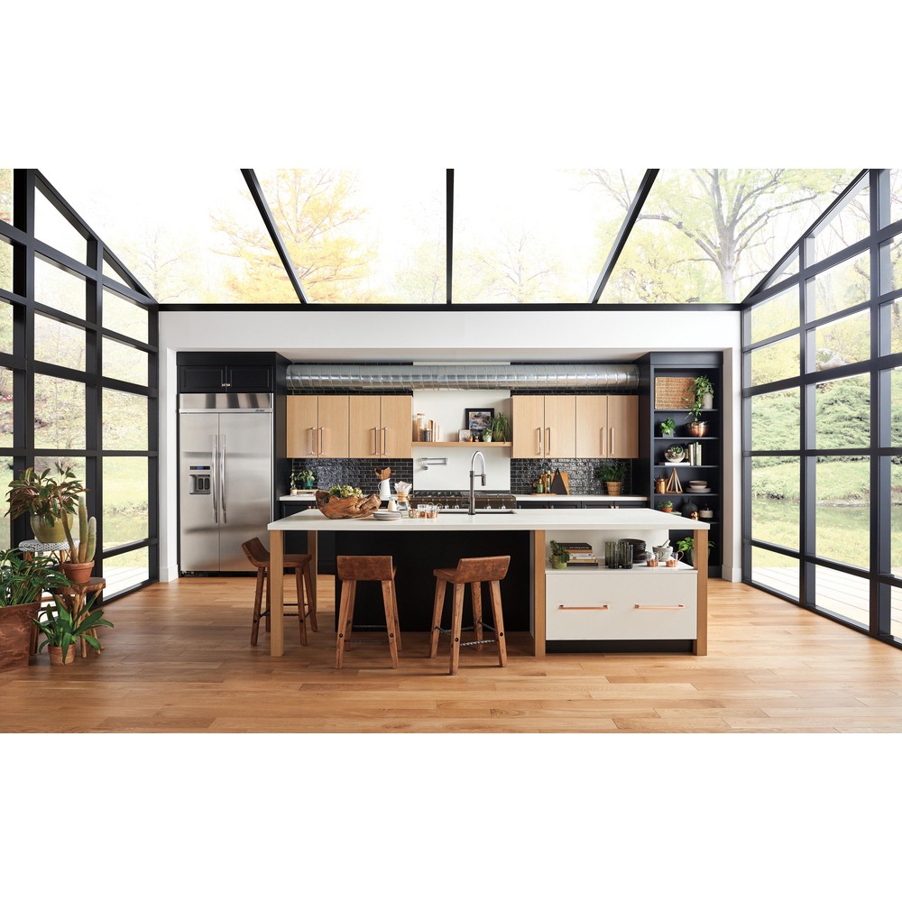 Dual shut off on the Delta Pot Filler faucet allows the user to turn the water off at either the wall or the spout, controlling the water flow at the point of use