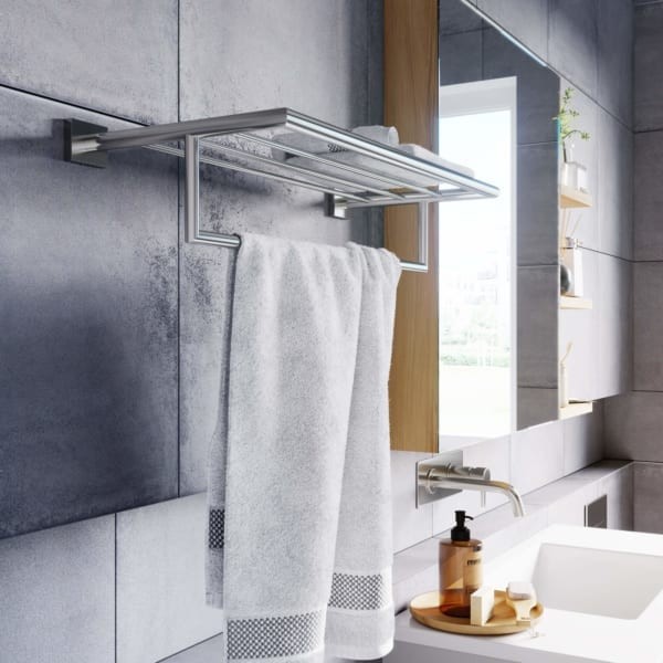 The solid square shape from the Crater series of bathroom accessories is sure to create a strong confident feeling in any bathroom landscape. Available in chrome, brushed nickel and matte black, this line of accessories will inspire confidence to those who see it.