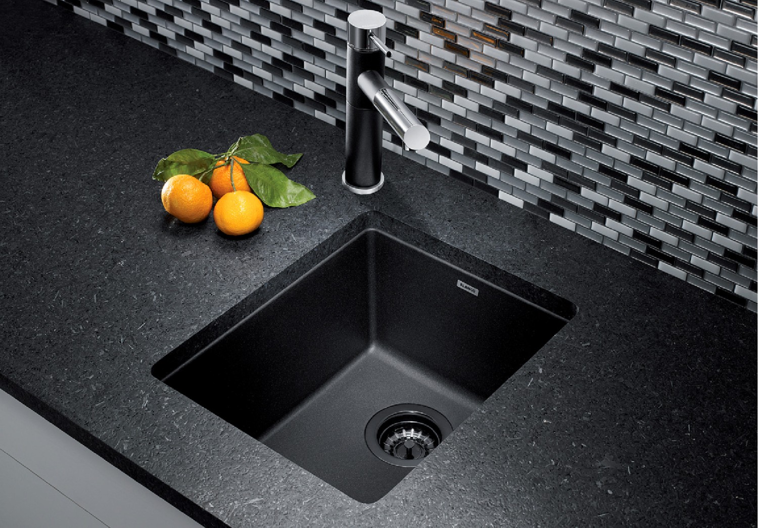 Rear-positioned drain location for maximum usable bowl and cabinet storage