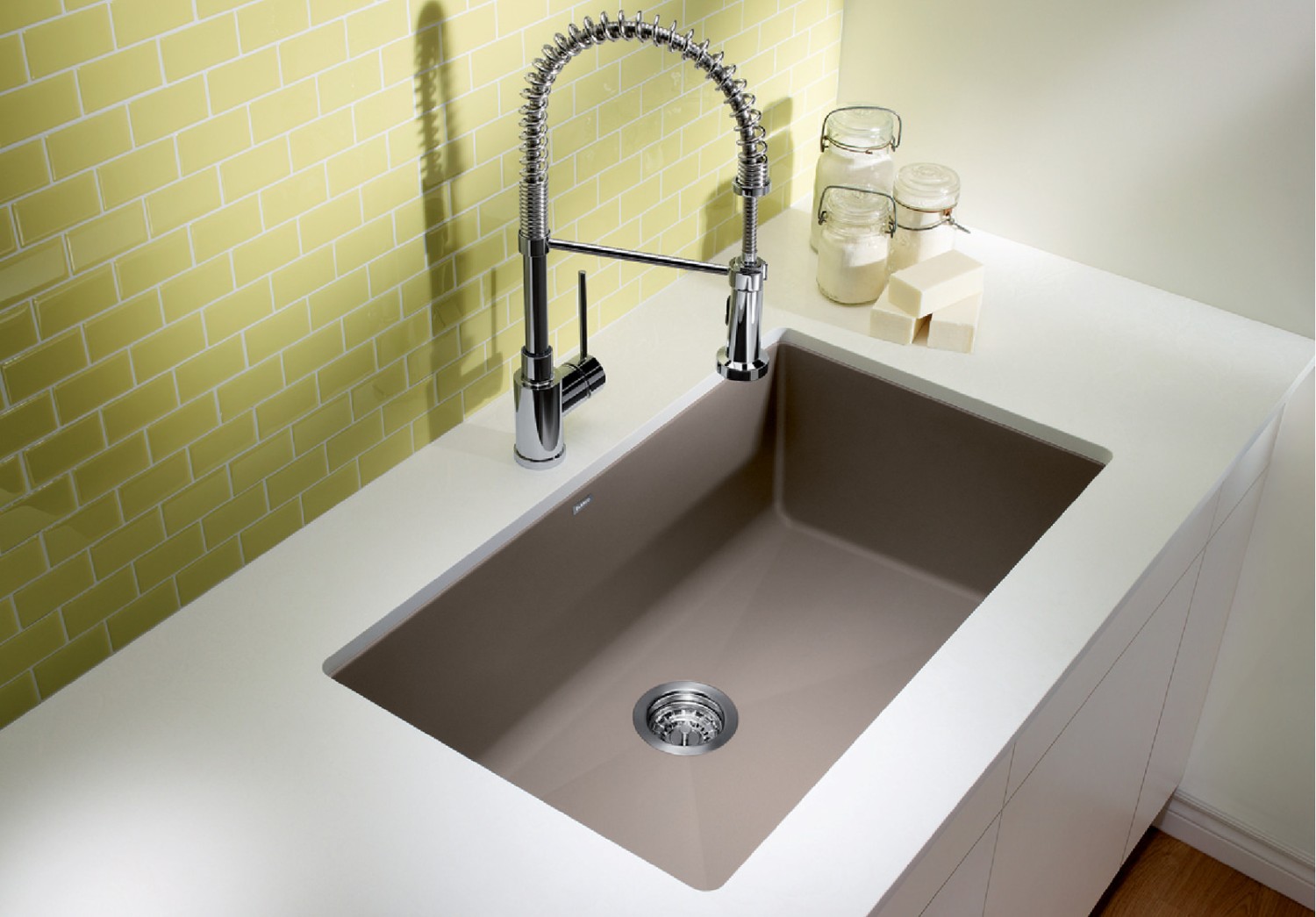 Rear-positioned drain location for maximum usable bowl and cabinet storage