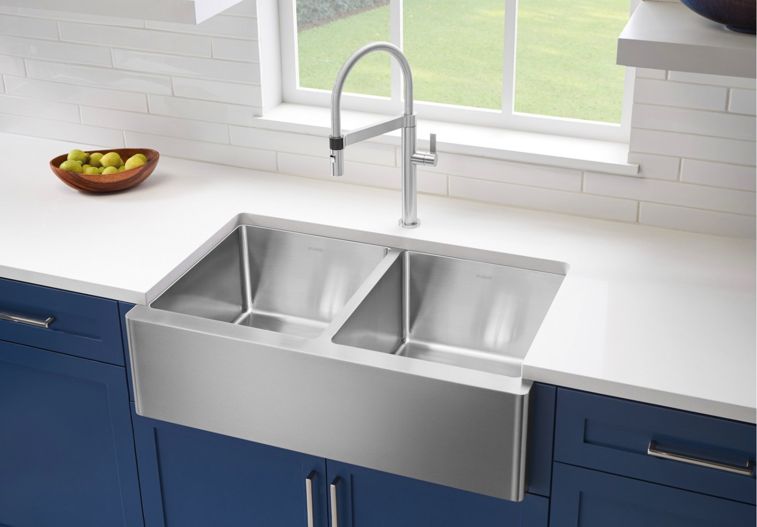 Rear-positioned drain location for maximum usable bowl and cabinet storage