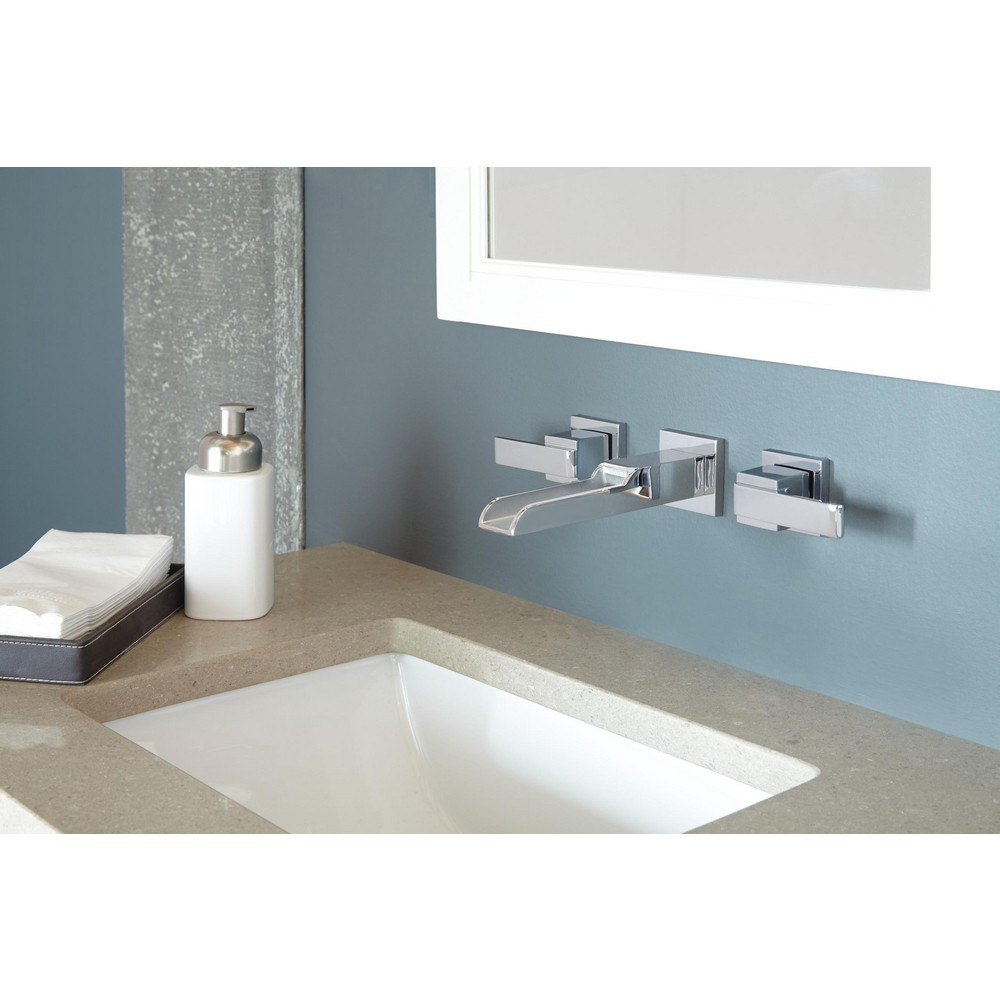 Bathroom faucet requires 3-hole 8" wall-mount installation
