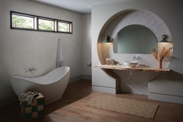Line and curve. Plane and arc. The Allariaâ„¢ Bath Collection begins with simple forms. Alone, each is unassuming. But combine the elements, and a transformation occurs, creating an alluring force.