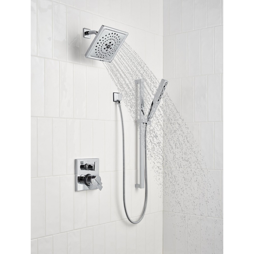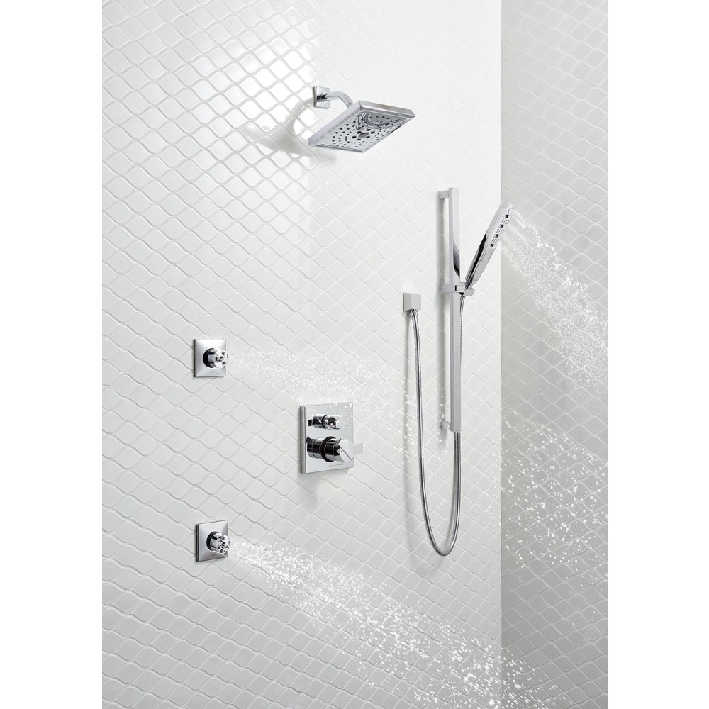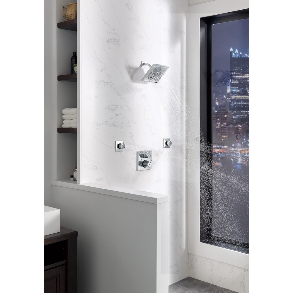 The Delta MultiChoice Integrated Shower Diverter consolidates custom shower design with its consumer-preferred streamlined style eliminating the need for an additional diverter valve. The angular modern style is boldly contemporary, featuring crisp lines for an upscale feel. With three popular style choices to coordinate with any bathroom décor, it provides you the flexibility to select the type of custom shower functionality you prefer. With the MultiChoice Universal system, you have the freedom to upgrade style and functionality later. And, because there?s no need to alter plumbing behind the wall, you save time, effort and money on future renovation updates.