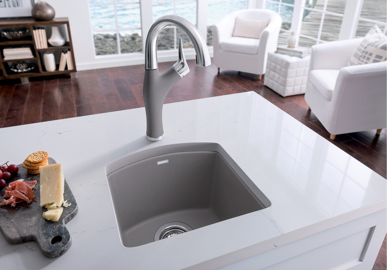 Rear-positioned drain location for maximum usable bowl and cabinet storage