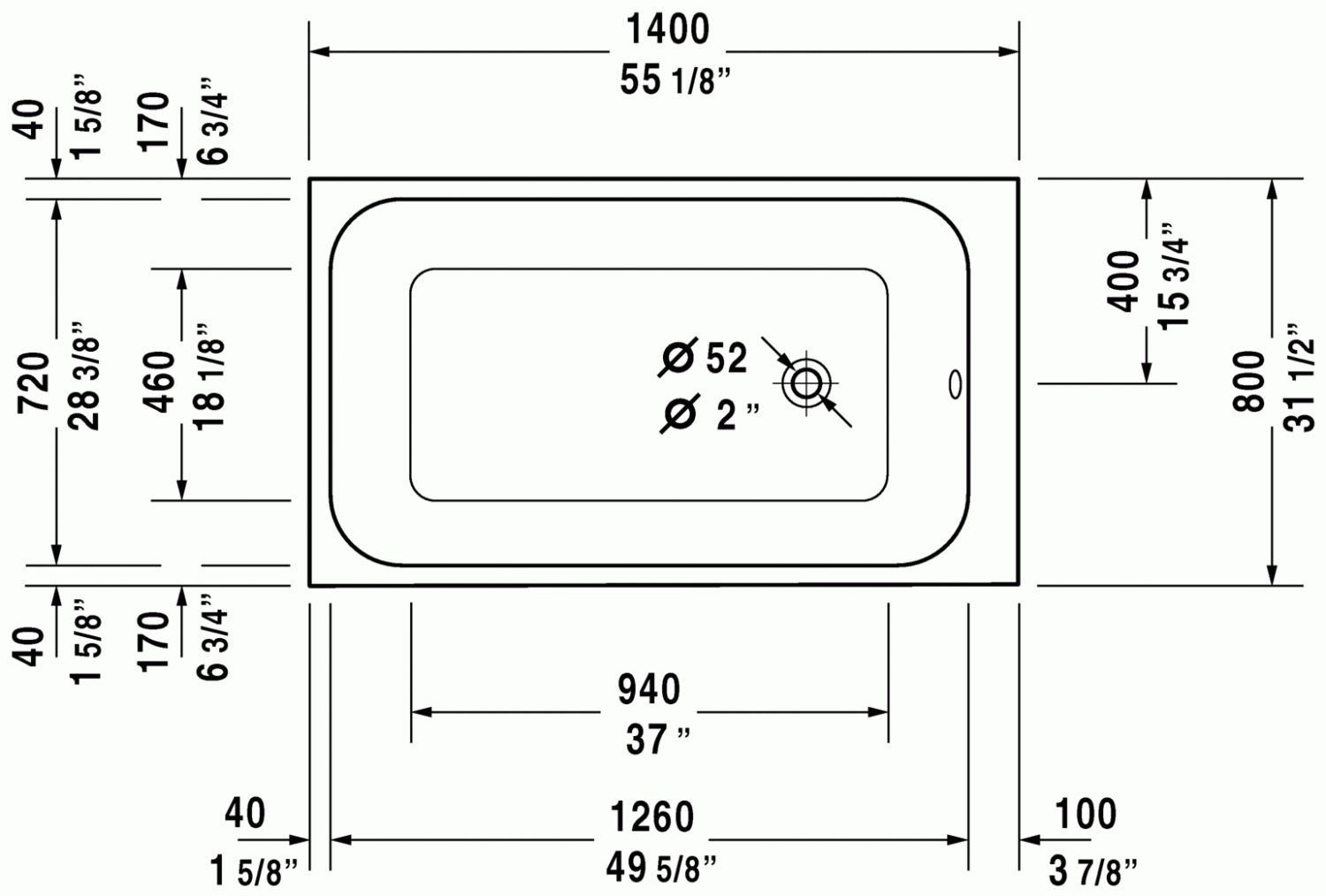 55 1/8" x 31 1/2" Inch