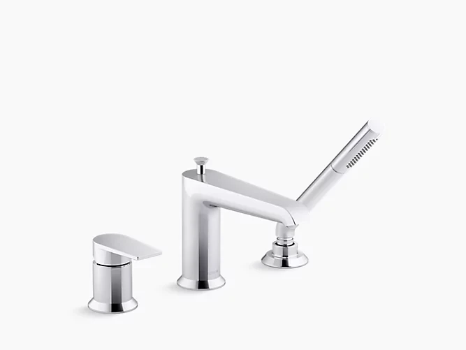 Minimalist in its design, the Hint™ bathroom faucet collection is a versatile style choice for traditional or contemporary environments. Coordinate with KOHLER® Pitch™ showering components, and create a space that will look beautiful for years to come. This deck-mount bath faucet includes a handshower to enhance your bathing options.