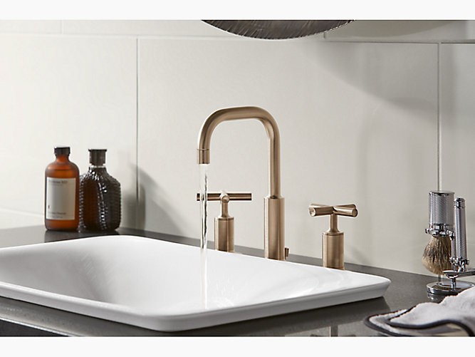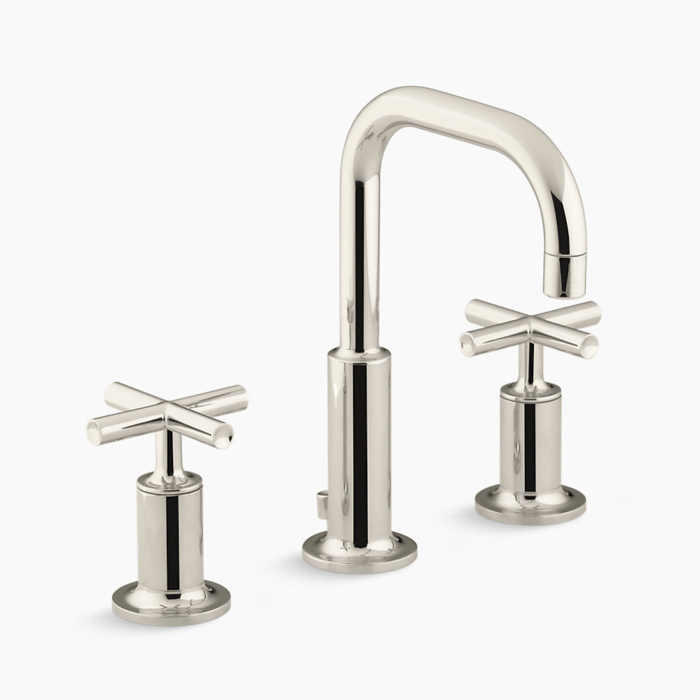 Combining architectural forms with sensual design lines, Purist faucets and accessories bring a touch of modern elegance to your bathroom. This sink faucet exemplifies the Purist collection's understated style, with its low gooseneck spout and cross handles. Easy-to-install and leak-free UltraGlide⢠valves provide reliable performance and durability. And the spout features laminar flow, which helps conserve water while preventing splashing.
