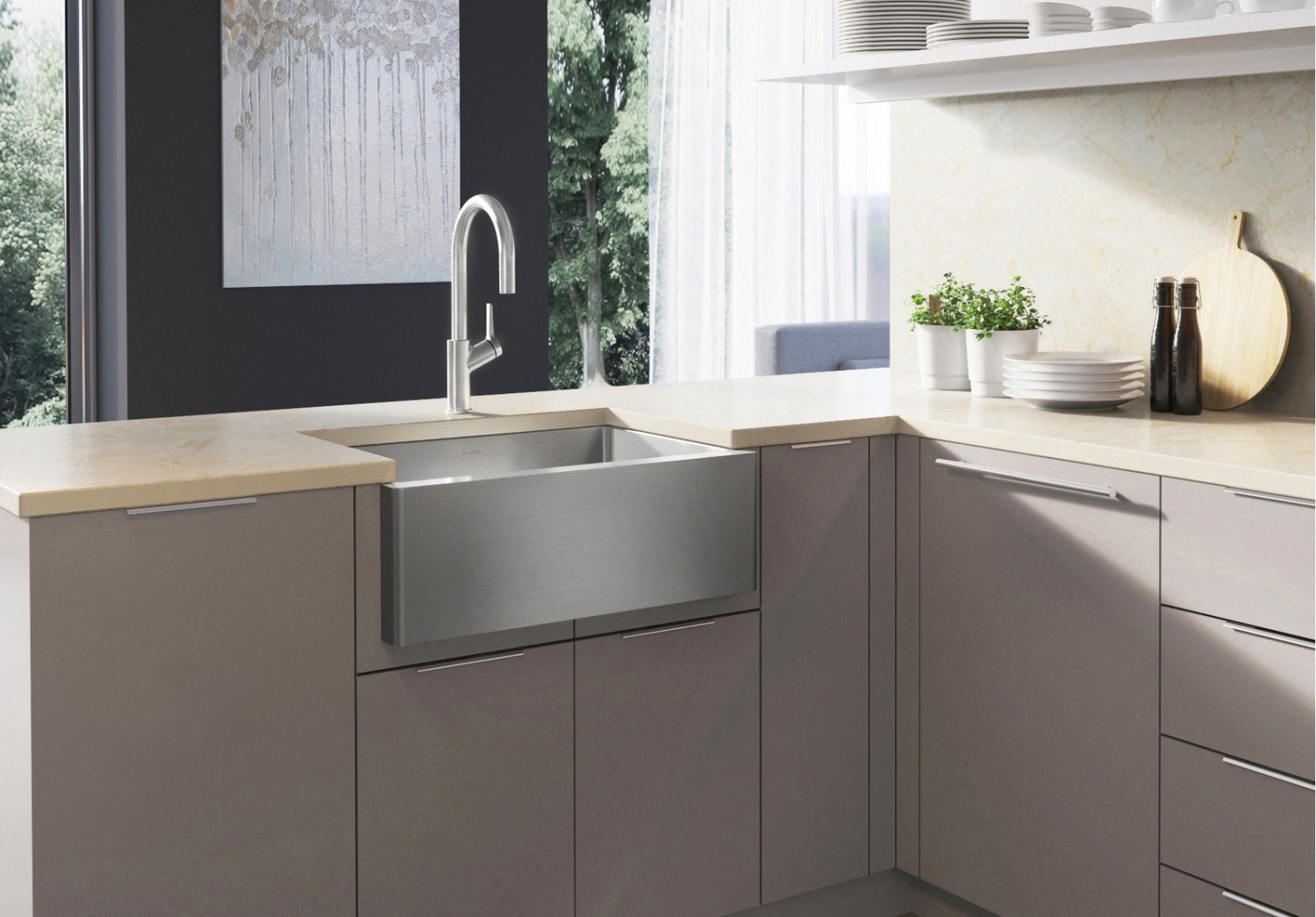 Rear-positioned drain location for maximum usable bowl and cabinet storage