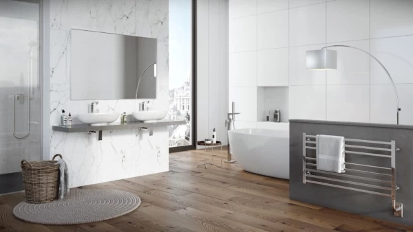 Sleek and stylish: the Avento towel warmer brings a kiss of luxury to your home. This signature square design is characterised by its crisp edges, balanced lines and is available in four gorgeous finishes: chrome, brushed nickel, polished nickel or matte black. Choose between portrait or landscape wall-mounted towel warmer options to fit your space. If you choose the electric hardwired option, you’ll get a convenient 7-day timer included with your purchase so you’ll never have to wait for your towel warmer to heat up again!